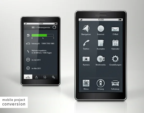 Ein mobiles Gerät, welches unter anderem die Fernverwaltung des Autos ermöglicht. Konzeption, Screendesign, Produktgestaltung, Visualisierung
