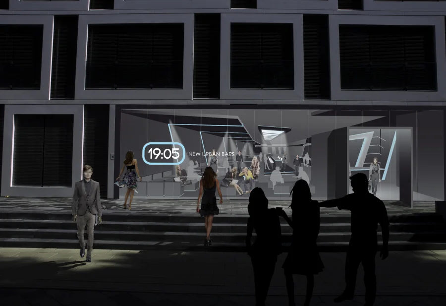 Mit meinem Konzept der NEW URBAN BARS möchte ich einen neuen Weg der Nutzung des urbanen Raumes aufzeigen, angewendet auf den gastronomischen Bereich. Es soll sich der Problematik der Entfremdung des Einzelnen mit seinem Umfeld durch die Globalisierung, das Aufkommen der neuen Medien und digitalen Welten und der daraus resultierenden Vereinheitlichung stellen. Es bietet eine Gegenbewegung zur Systemgastronomie à la Vapiano und Mc Donalds an. Es schafft Identifikationsmöglichkeiten für den einzelnen mit seinem Standort, ohne die Ambition einer global agierenden „gastronomischen Kette“ zu verlieren. Es geht also um einen familieren Zusammenhalt einer Marke, durch markenspezifische Elemente wie Logo, Typografie, Format, Erscheinung, Raumgestaltung, Philosophie und Arbeitsphilosophie, aber mit der Möglichkeit eine eigene Identität durch die standortspezifischen Faktoren zu erlangen. Somit werden die Vorteile und die Persönlichkeit eines Ortes genutzt, hervorgehoben und verstärkt. Die im sich im logo immerwieder ändernde Uhrzeit gibt die Möglichkeit den Charakter des Ortes hervorzuheben und den standortspezifischen Verkehr der Zielgruppe darzustellen. Dadurch können interessante und abwechslungsreiche Raumkonzepte entwickelt werden die gleichzeitig unter der Einheit der Markenphilosophie NEW URBAN BARS stehen.