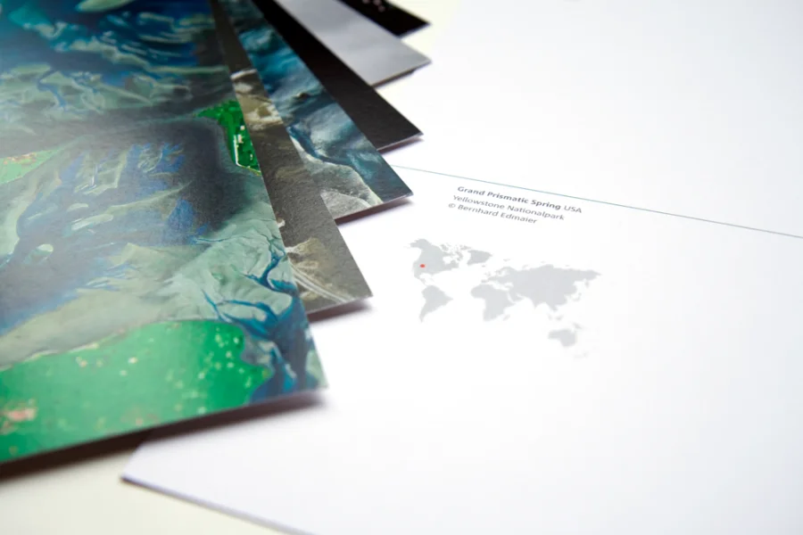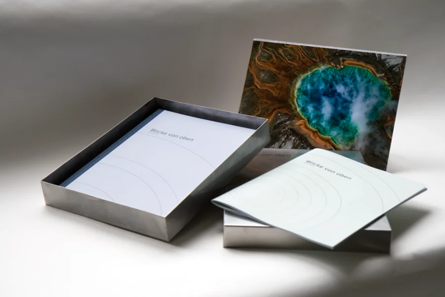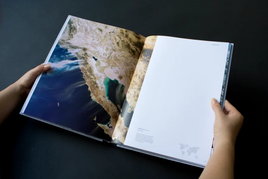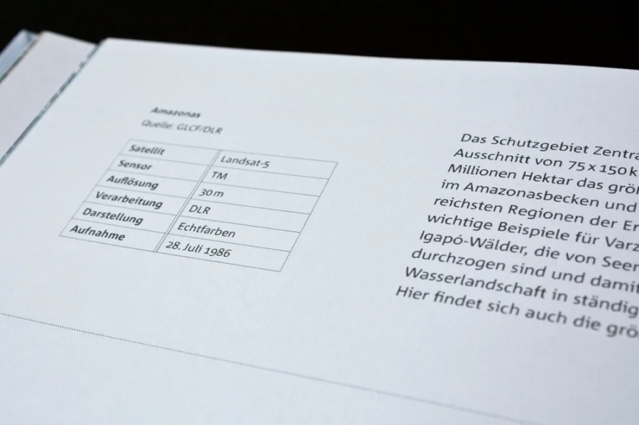 Im Buch beschäftigen wir uns mit Blicken von oben ab 10.000 m, sprich Satellitenaufnahmen. Wir haben uns dazu entschieden, die Bilder groß darzustellen und kurz aber prägnant die wichtigsten Informationen in Form von kurzen Erklärtexten darzulegen.