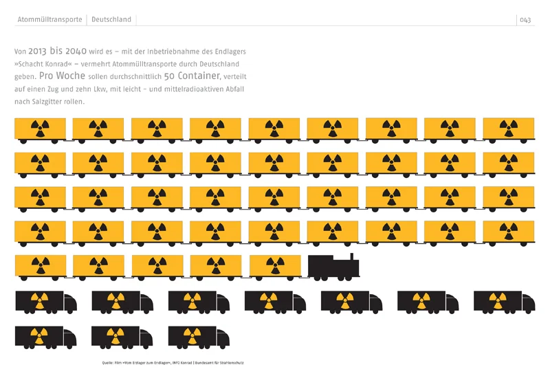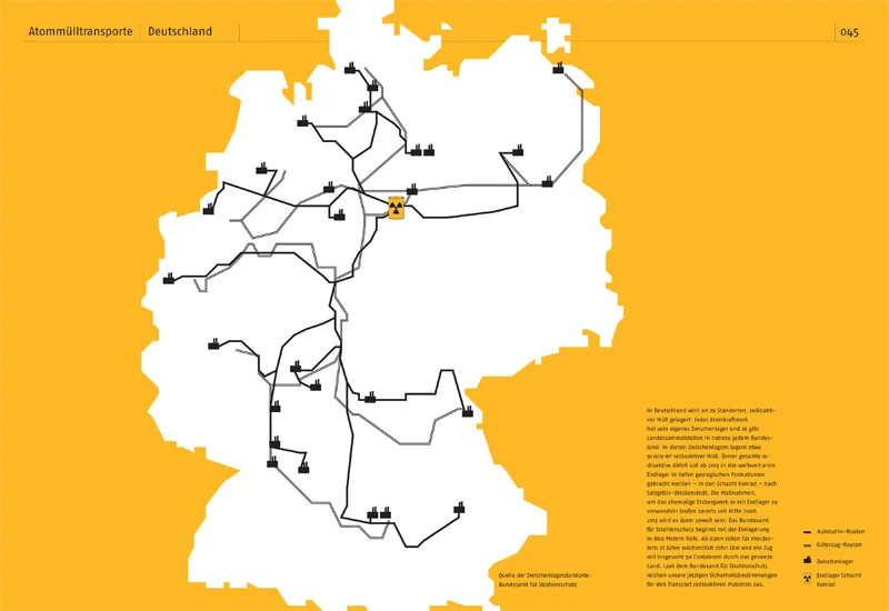 Das Buch ist in einer “radioaktiven” Sonderfarbe gedruckt – ein Versuch die gefährliche Strahlung sichtbar zu machen.