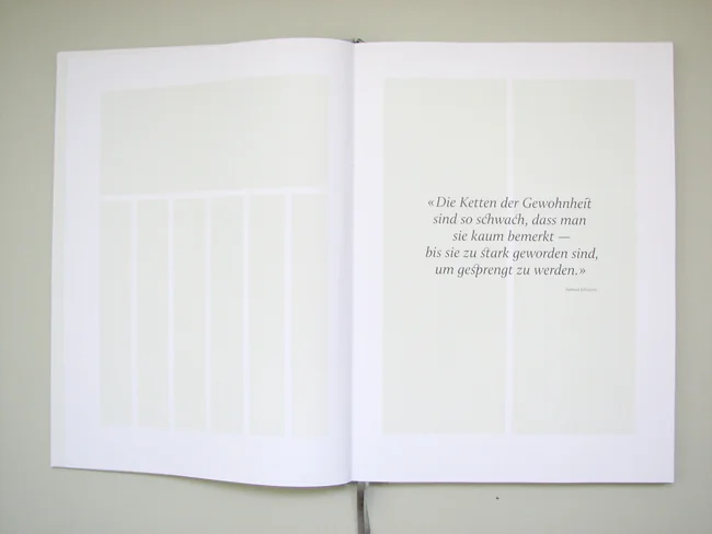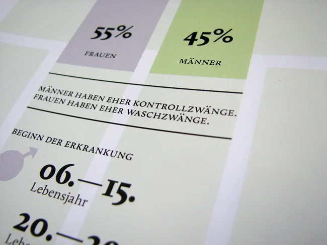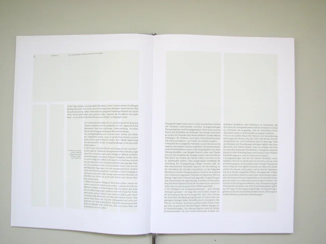 In dem Buch «artig» sind die Informationen über die Zwangsstörung durch eine reduzierte Gestaltung in Typografie und Farben in den Fokus gerrückt. Unterbrochen werden die sachlichen Textseiten von Illustrationen, die durch menschliche