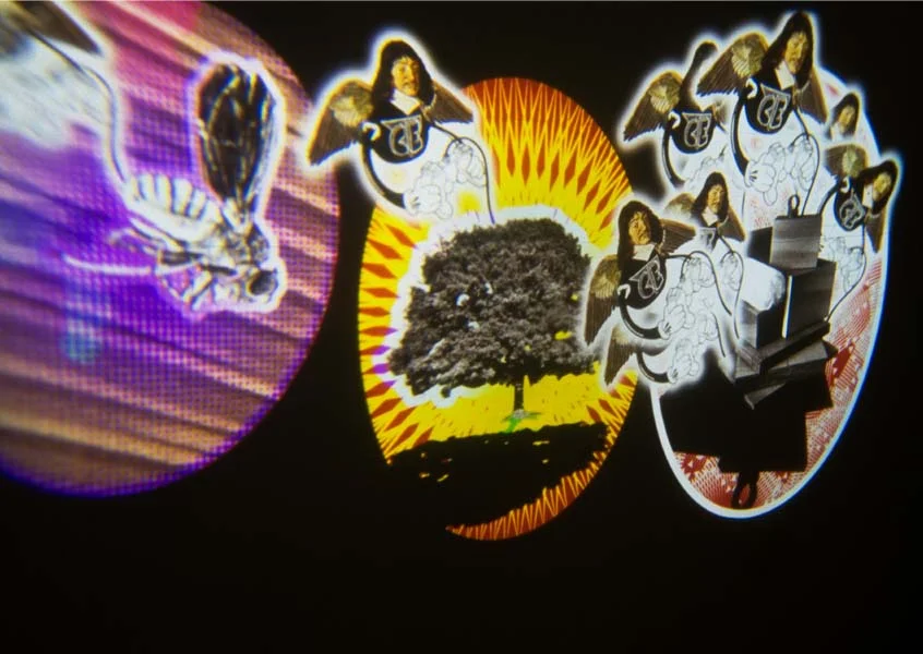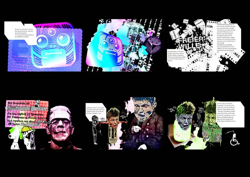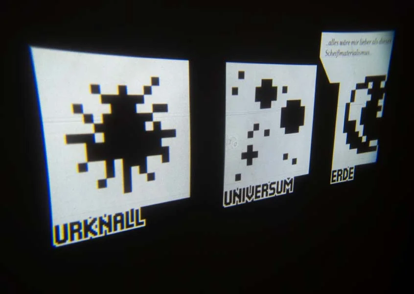 Um diesen unfassbaren rätselhaften Gebiet des Selbstbewusstseins gerecht zu werden, hielt ich es für treffend, kein gewöhnliches haptisches Druckmedium zu realisieren, sondern eine Art projiziertes Buch, deren Inhalt eben nicht gedruckt erscheint, sondern projiziert wird.