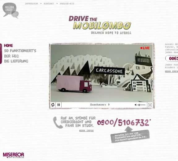 DRIVE THE MOBILOMBO ist eine Spendeninitiative vom MISEREOR Hilfswerk unterstützt von Kolle Rebbe.
