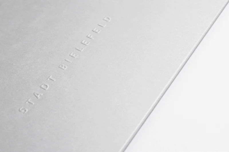 Druck in Sonderfarbe Silber, Prägungen als Veredelung.
