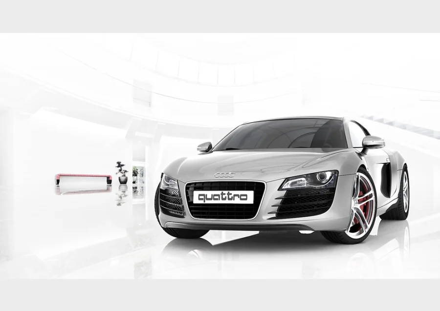 Sämtliche Bereiche des Artworks , beginnend mit der Erstellung des CGI-Sets, des Textierens, der Beleuchtung, des Renderings der 3D-Daten, der Fotografie und der Postproduktion, werden von uns selbst erarbeitet.