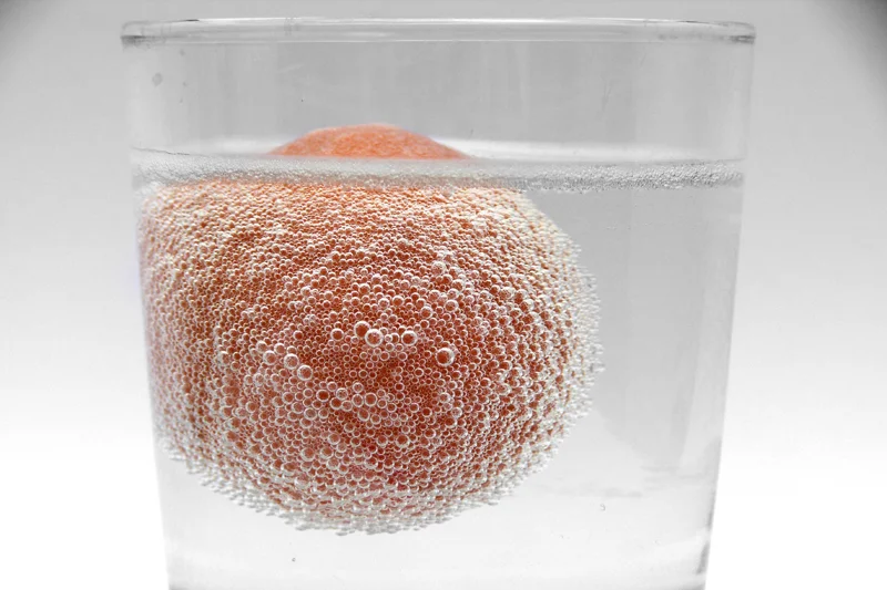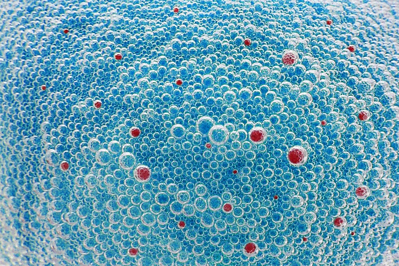 Diesen Versuch habe ich noch einmal gemacht und ihn fotodokumentiert. Es haben sich interessante Luftbläschen gebildet, aus denen am Ende eine Art kunstvolles Bild entstanden ist.