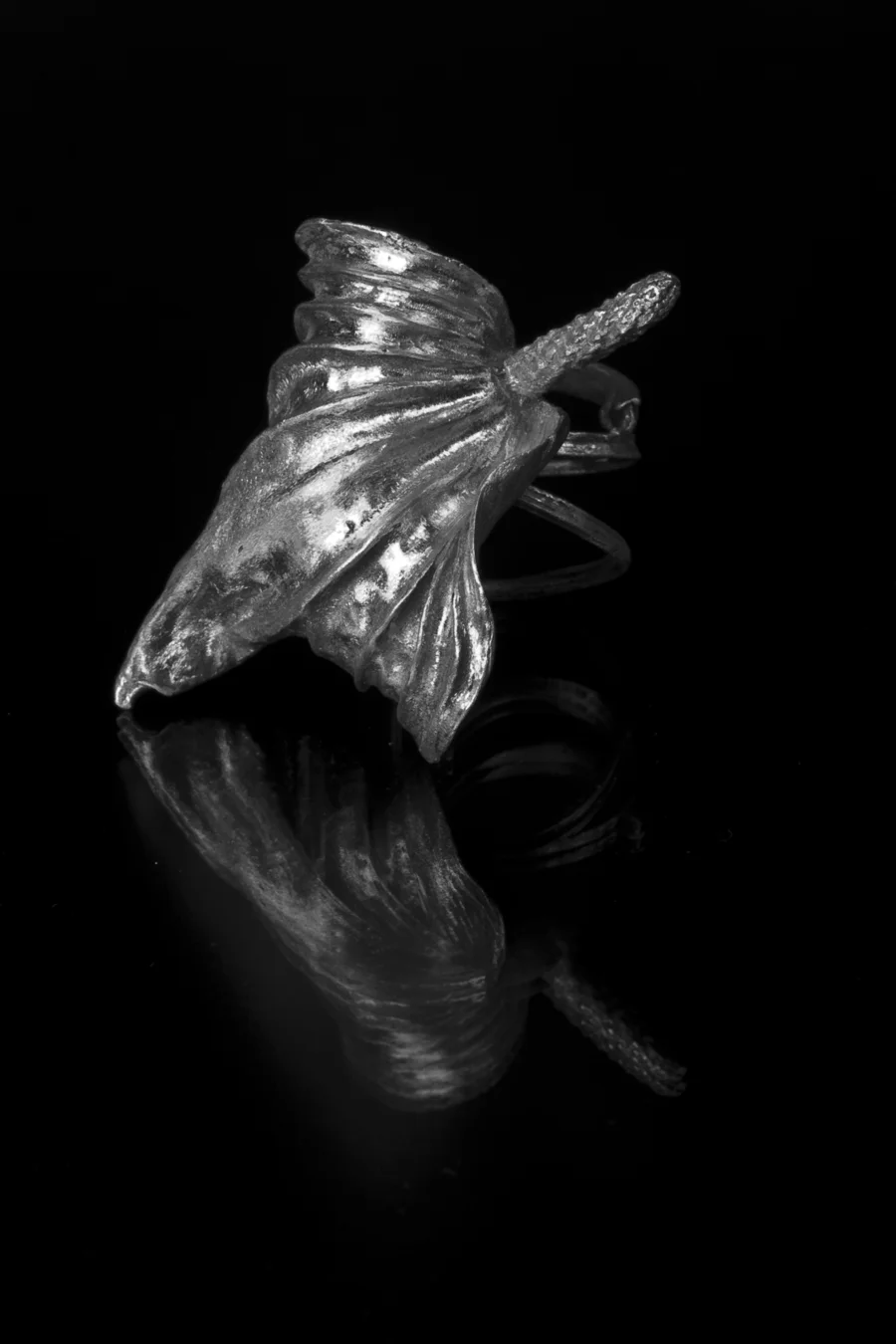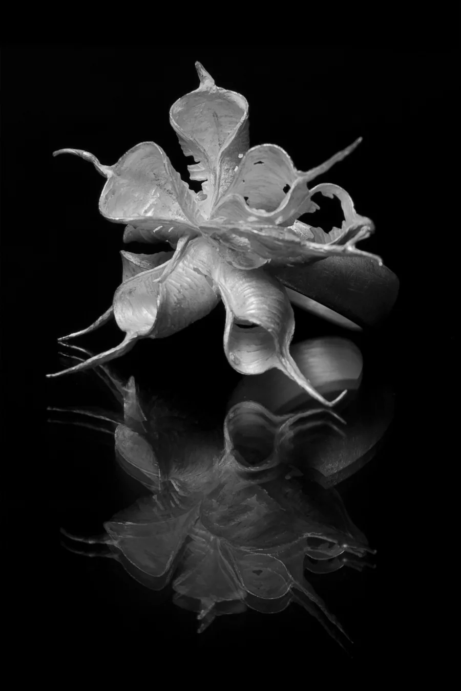 Meine Schmuckstücke haben ihren Ursprung in meinen Gedanken, die besonders von Märchen, der Natur und den häufig aberwitzigen Irritationen des Alltags inspiriert werden. Für mich ist es wichtig, diese Interpretationen in bestimmten Formen festzuhalten und zu transportieren. Die daraus erwachsende Gestalt muss jedoch nicht nur schön sein, sondern darf auch irritieren, stören und verspielt sein.