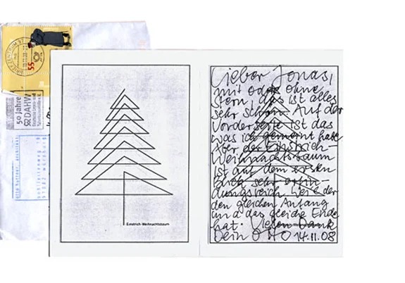 skizze und korrekturanweisung für ein weihnachtsmailing für otto huttner / architekturbüro es wurde die idee verfolgt mit nur einem strich eine konstruktionszeichung eines weihnachtsbaums zu erstellen.
