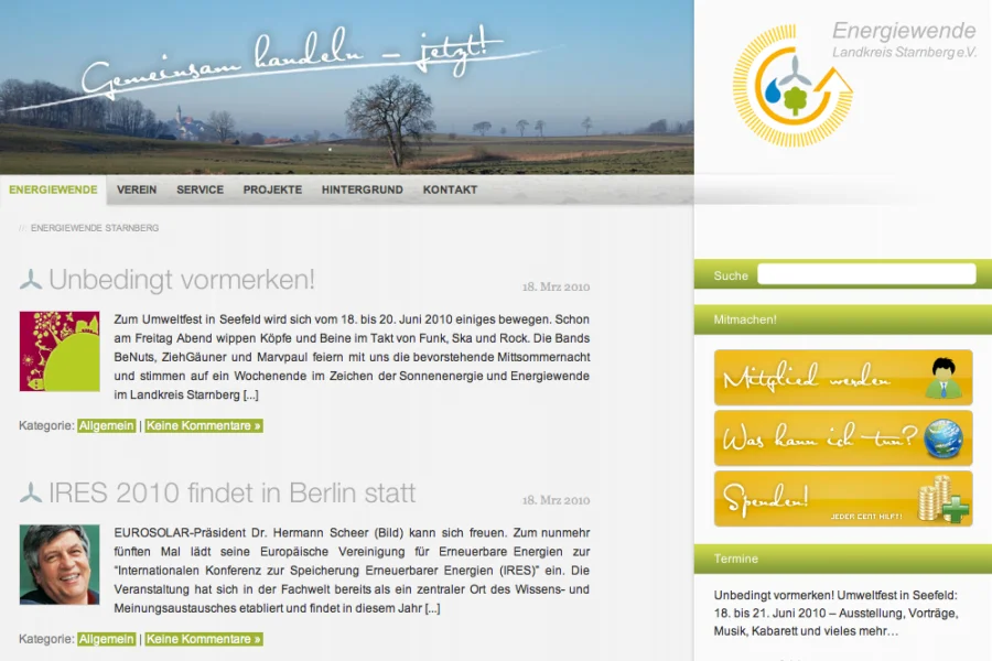 Die Webseite von dem Energiewende-Verein Starnberg und das dazugehörige Content Management System welches auf WordPress glänzt nun im neuen Design. Unterstützung in der Programmierung erhielt ich von Martin Snajdr.