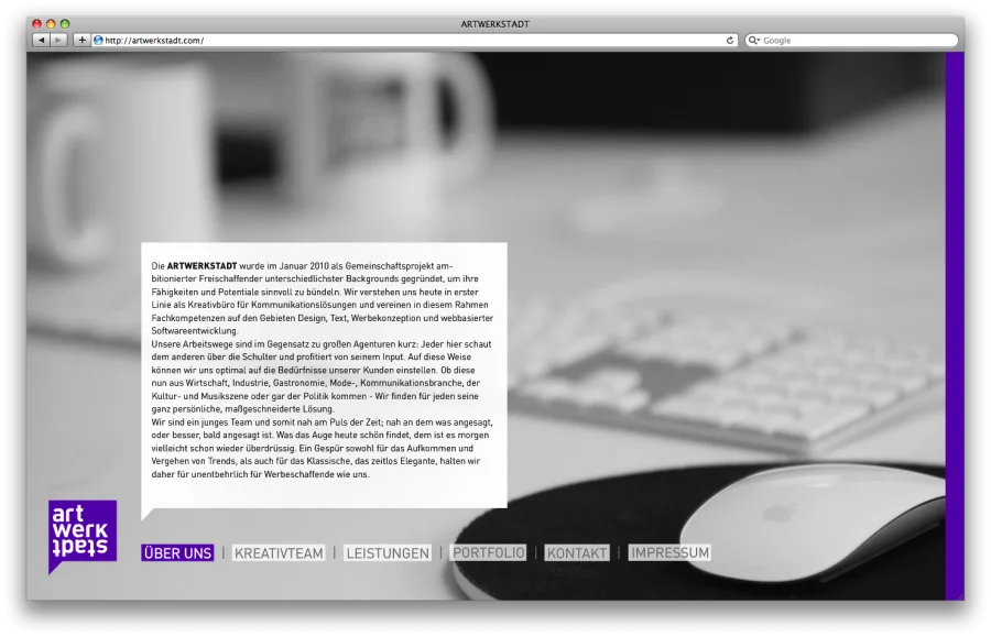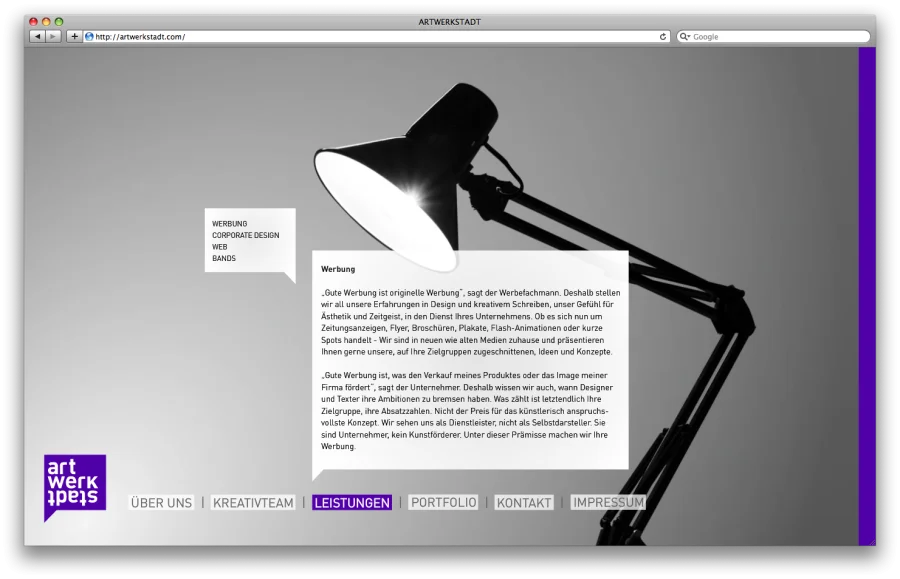 Das junge Kreativbüro für Design, Text, Werbe- und Veranstaltungskonzeption und webbasierter Software-entwicklung. Stets am Puls der Zeit und nah an dem was angesagt ist. Für alle die ihren Zielgruppen authentisch und unverkrampft begegnen, ihrem Image eine Frischzellenkur verpassen oder einfach nur gut aussehen wollen.