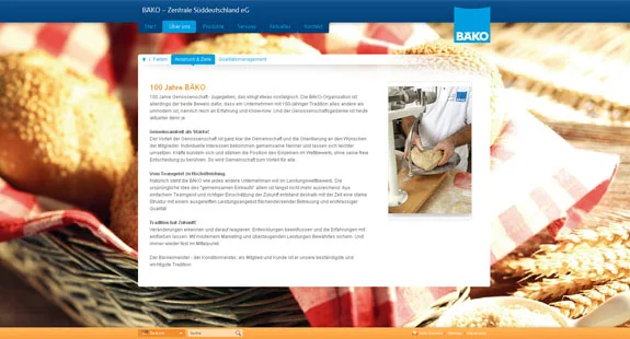 Die BÄKO-Zentrale Süddeutschland eG ist ab sofort mit einer neuen Corporate Website online. Die Netzbewegung hat die Zentralgenossenschaft von 25 Bäcker- und Konditorengenossenschaften beim Relaunch betreut und die neue Website vollständig realisiert.