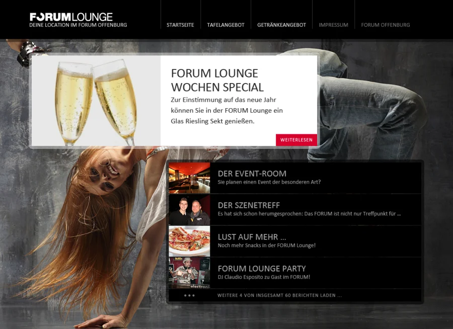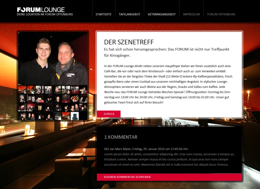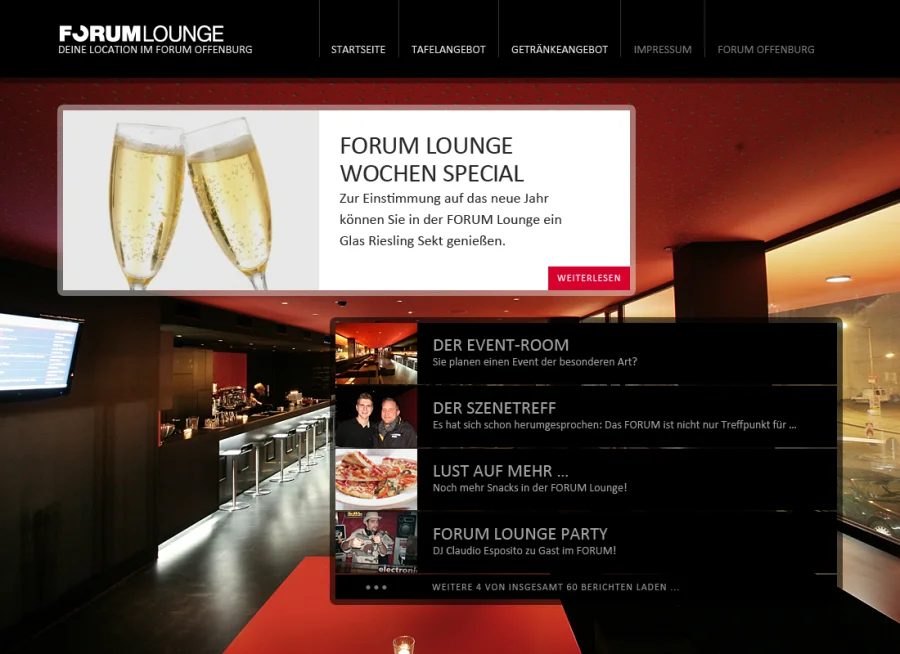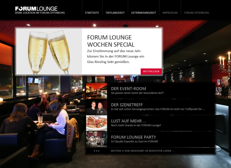 Microsite zu der dem Multiplex-Kino „FORUM Offenburg“ zugehörigen FORUM Lounge.