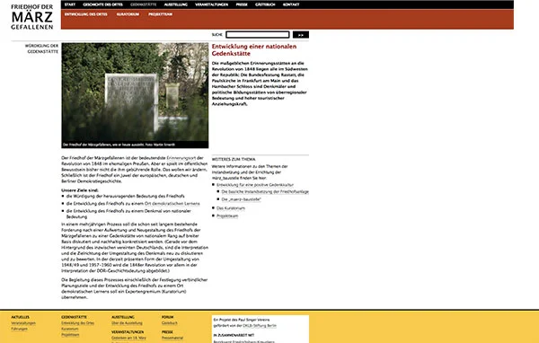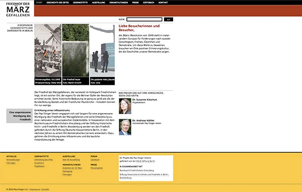 Der Friedhof der Märzgefallenen, der versteckt im Volkspark Friedrichshain liegt, ist ein solcher Ort, der eigens für die Berliner Opfer der Revolution errichtet wurde. Seine historische Bedeutung ist genauso groß wie die der Bundesfestung Rastatt und der Frankfurter Paulskirche – trotzdem kennen ihn nur wenige. Der Paul Singer Verein engagiert sich seit langem für eine angemessene Würdigung des Friedhofs der Märzgefallenen und seine Entwicklung zu einer nationalen und europäischen Gedenkstätte.