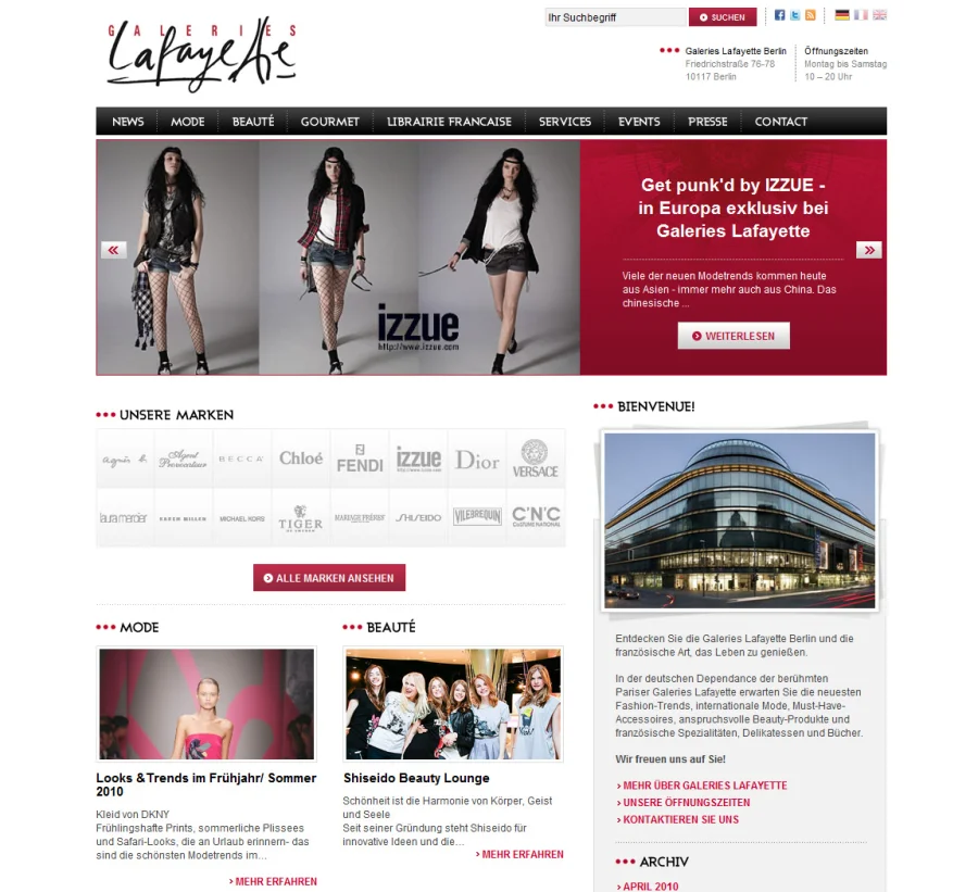 Redesign der Webseite für die Galeries Lafayette Berlin mit klarer und übersichtlicher Seitenstruktur, attraktiven Grafiken und Fotos, sowie Einsatz von Social Media.
