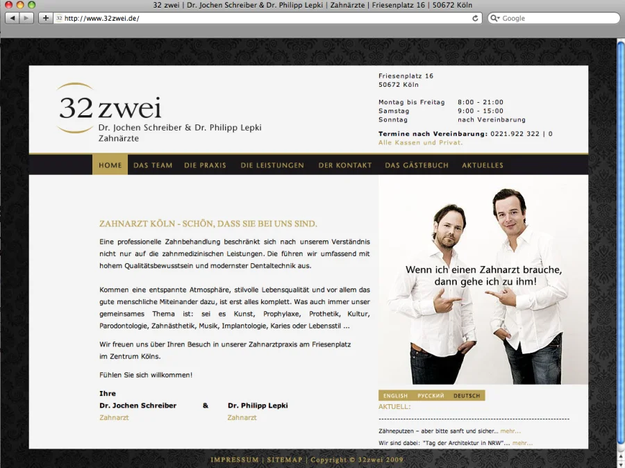 Internetseite für die Kölner Zahnärzte „32zwei”.