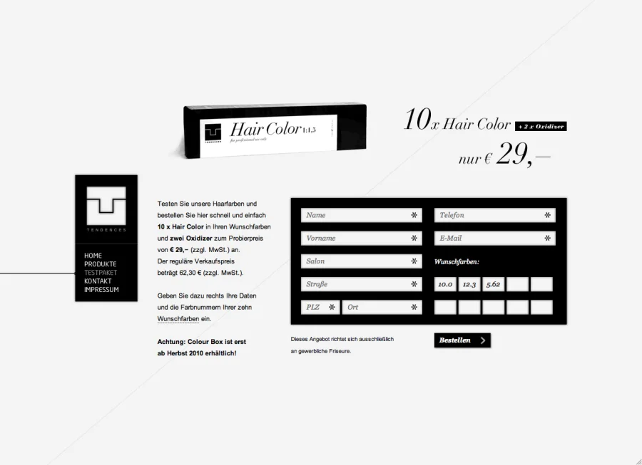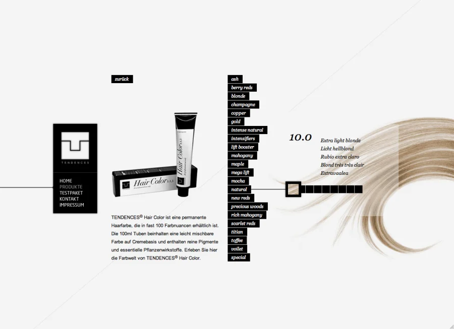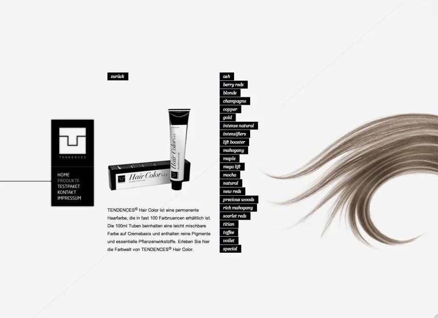 Non-Flash Microsite für die Brand Tendences Haircare.
