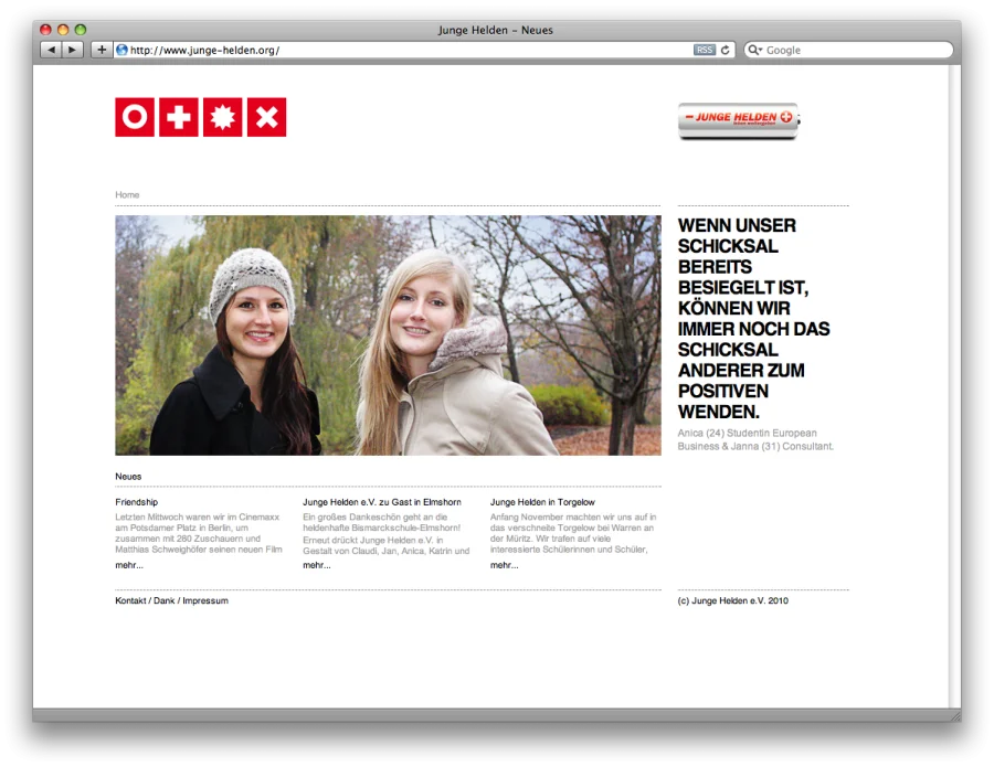 Für den Verein Junge Helden entwickelte Thoma+Schekorr die neue Website, deren Ziel es ist, zum Thema Organspende aufzuklären. Entscheidend ist nur die Entscheidung. Unter diesem Motto plädieren die Unterstützer, u. a. Prominente wie Schauspieler Jürgen Vogel auf der Website für einen offenen Umgang mit dem Thema Organspende. Klar, direkt und ohne erhobenen Zeigefinger steht die Website gerade im Umfeld der vielen Hilfsorganisationen für eine besondere Haltung.