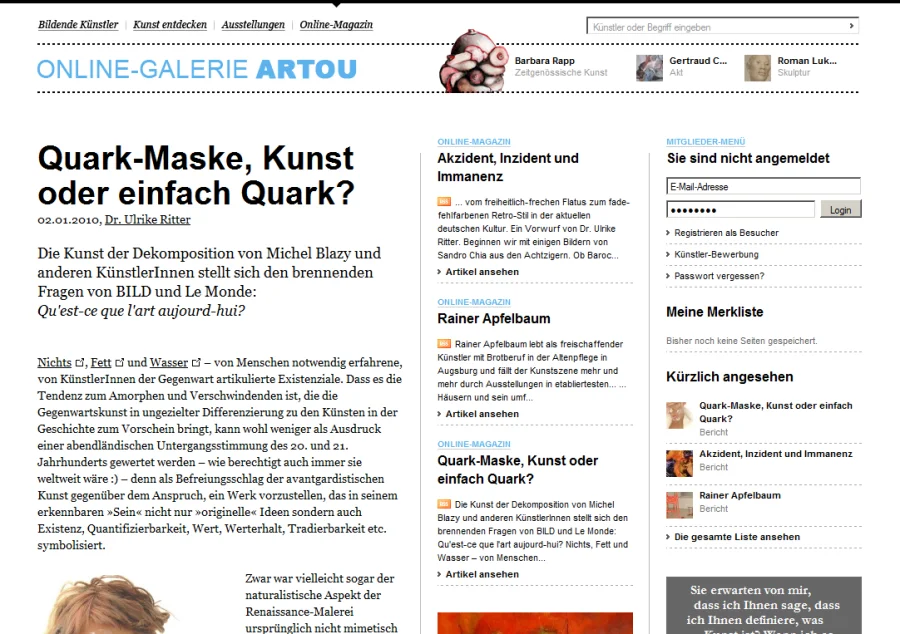 Bildende Künstler präsentieren eine Auswahl ihrer Arbeiten sowie laufende Ausstellungen.