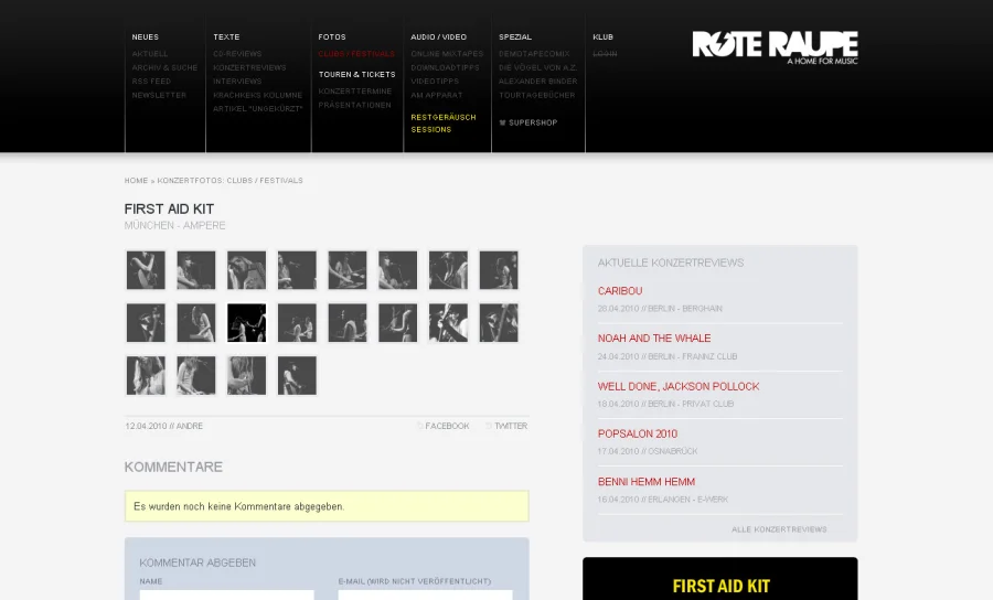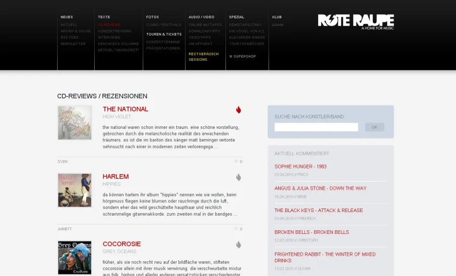 Online Musik Portal mit News, Reviews, Interviews, Konzertfotos, etc … Basierend auf PHP und jQuery (Keine Blogsoftware). Administration über ein eigens entwickeltes CMS.