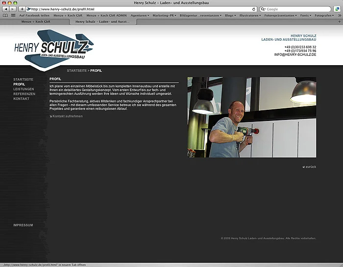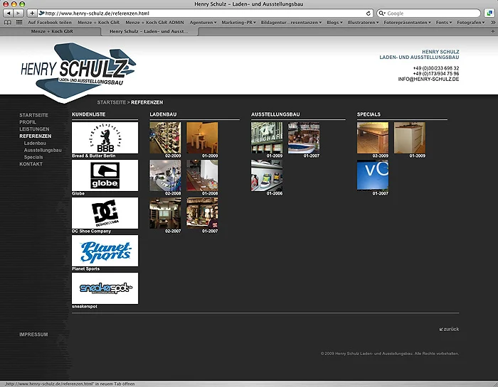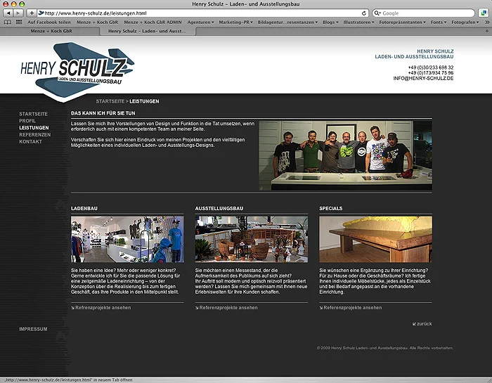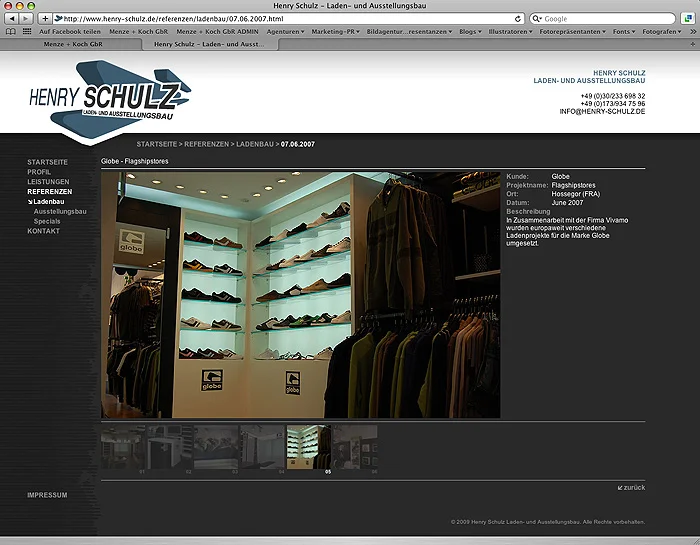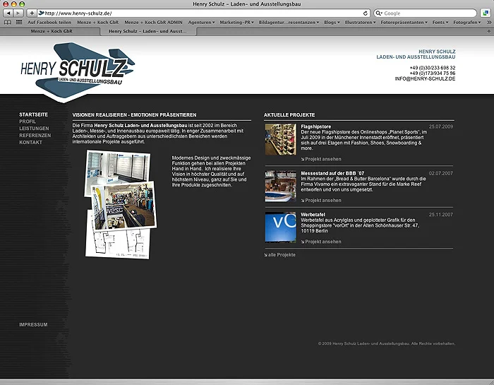 Für Henry Schulz, einen innovativen Laden- und Ausstellungsbauer aus Berlin, entwickelten wir ein Online-Portfolio. Um seine Arbeiten entsprechend zu würdigen, haben wir uns für einen sehr bildstarken Aufbau seiner neuen Website entschieden. Als Besucher der Website bewegt man sich so durch eine Erlebniswelt aus Form und Rationalität.