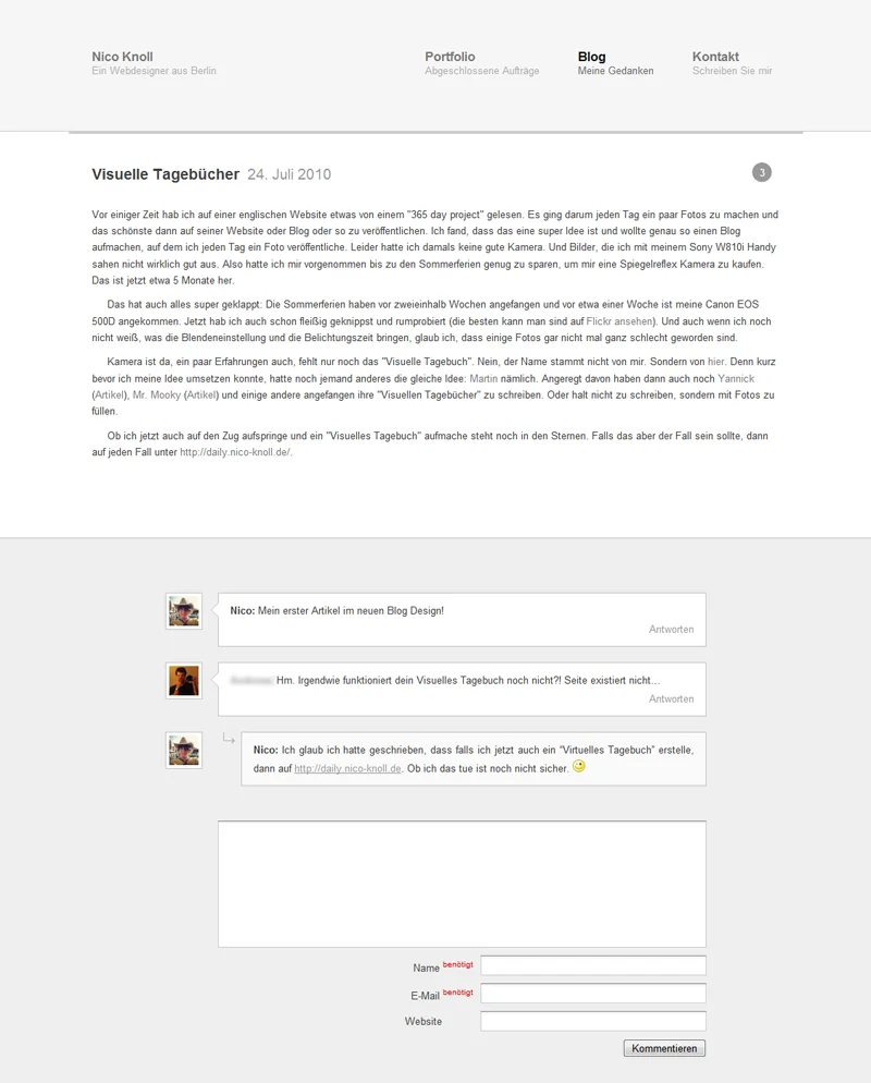Das Online-Portfolio des 14-Jährigen Berliner Webdesigners und Bloggers Nico Knoll. In seinem Blog schreibt er über die aktuellen Themen rund um Design und das World Wide Web.