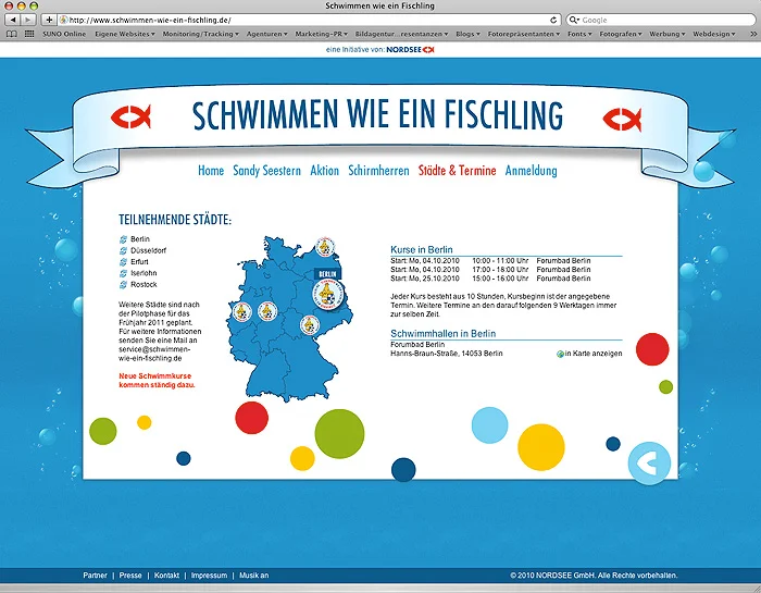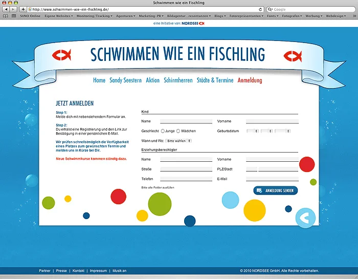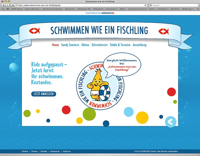 “Schwimmen wie ein Fischling” ist ein Projekt von NORDSEE und dem DSV, bei dem Kids im Alter von fünf bis sieben Jahren das Schwimmen beigebracht wird. Kostenlos. Wir entwickelten im Auftrag der Exit Media GmbH die Website zu dieser Aktion. Zudem gestalteten wir die Einladungskarte für das Auftakt-Event.