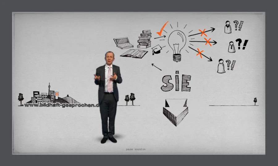 bildhaft-gesprochen.de: mit klaren Worten, schlüssigen Illustrationen, einfachen Animationen und einem dynamischen Moderator verständlich erklären.
