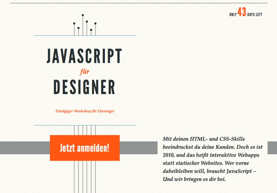 One-Page-Site fur einen eintägigen Webdesign-Workshop.