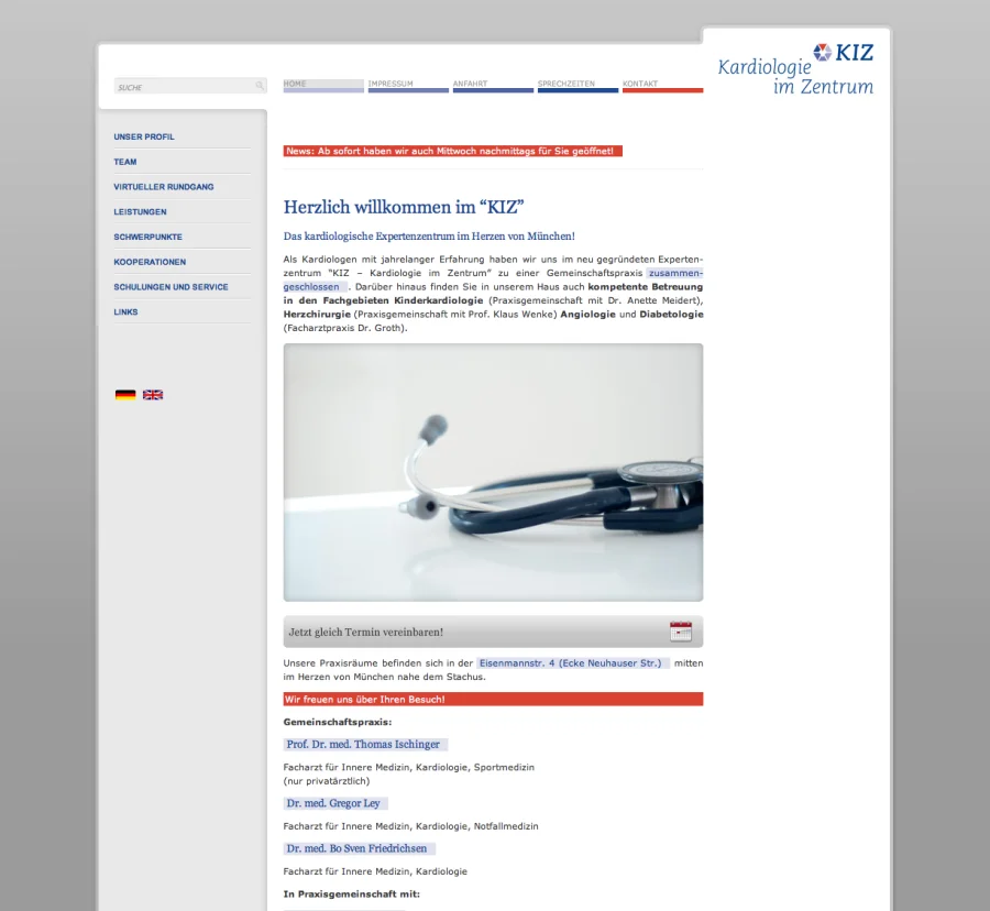 Für das kardiologische Expertenzentrum in München realisierten wir diesen Internetauftritt und bringen nach einigen Monaten dadurch regen Zulauf in die Praxis.