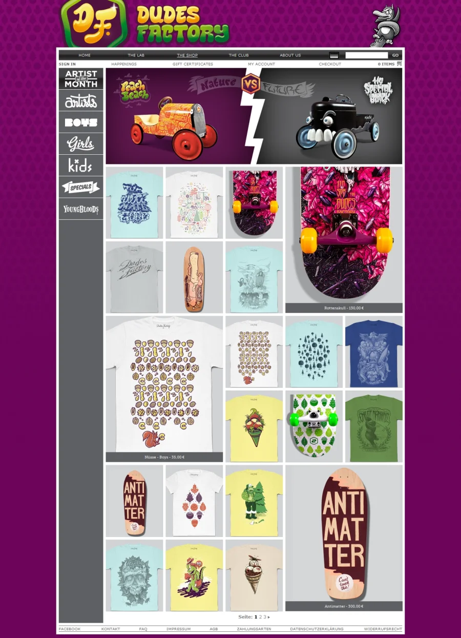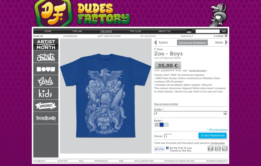 T-Shirt-Online-Shop, Mass-Custimization, Designs von Creative Dudes und Illustrationen weltbekannter Artists.