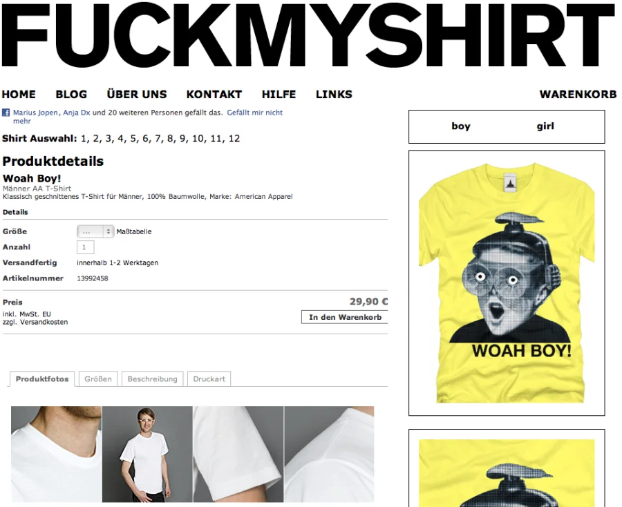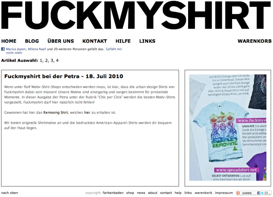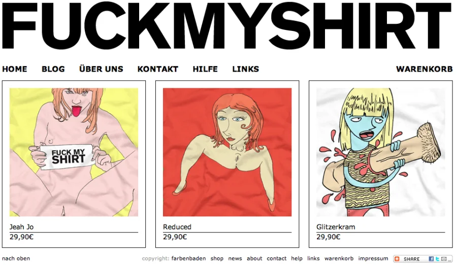 Hier sind Screenshots vom fuckmyshirt Onlineshop. Fuckmyshirt wurde 2008 von mir gegründet.