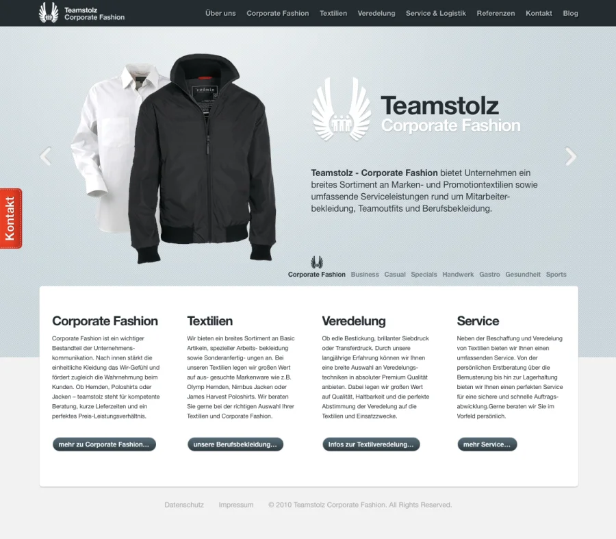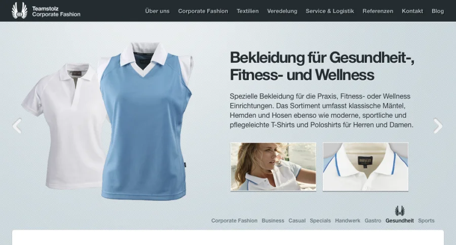 Teamstolz – Corporate Fashion bietet Unternehmen ein breites Sortiment an Marken- und Promotiontextilien sowie umfassende Serviceleistungen rund um Mitarbeiterbekleidung, Teamoutfits und Berufsbekleidung.