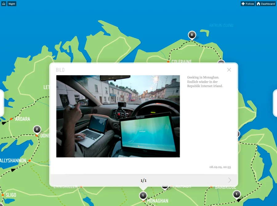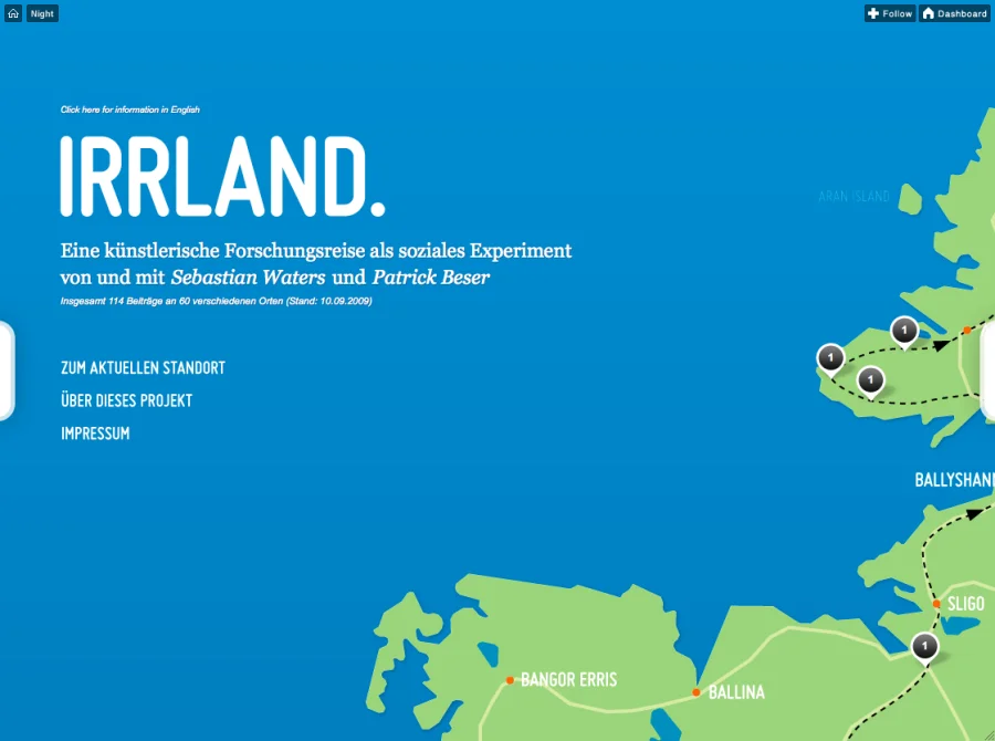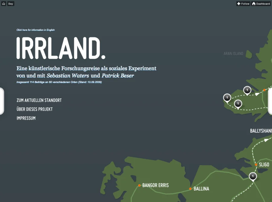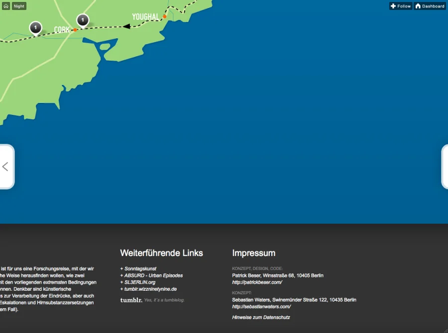 Patrick Beser und Sebastian Waters bauten für ihren einwöchigen Roadtrip nach Irland im September 2009 einen Tumblr so um, dass sie die Microblogging-Plattform nutzen können, um eine interaktive Map mit ihren Erlebnissen und Ereignissen zu füllen und diese auf Zeit und Ort festlegen und dokumentieren zu können.